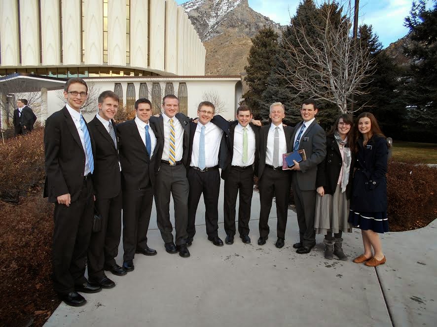 | Elder Fisher and Elder Larson at the Provo LDS temple. |